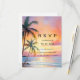 Beach theme wedding design features evening sunset sky, palm trees, blue ocean and sandy beach. Personalize with your own text. Use Edit Design tool to change font size, style or colour. Check out the whole collection for invitations, matching favour bags, stickers, thank you cards, banner and more…