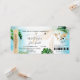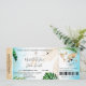 Destination Beach Wedding Boarding Pass Ticket Gold Plane Invitation with heart and plane icon with tropical leaves