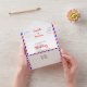 A fun yet stylish destination wedding design featuring a silhouette map of Corfu with cute faux postage marks and red, white and blue airmail stripes. Nice and easy to customize with your personal wedding details and a handy tear off RSVP card for your convenience.