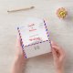 A fun yet stylish destination wedding design with a silhouette map of Ibiza, Balearic, Spain with cute faux postage marks and red, white and blue airmail stripes. Nice and easy to customize with your personal wedding details and a handy tear off RSVP card for your convenience.