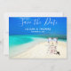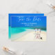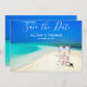 This Destination Wedding Save The Date Card is designed with an ocean background with white sandy beaches and a deep blue sky backdrop. To personalize, simply insert your details into our easy template, replacing the sample text. The front text includes: Save The Date, Bride and Groom's Names and Wedding Date. The reverse text includes: The Wedding Location Details and Formal Invitation To Follow.