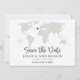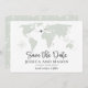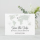 Destination wedding world map save the date invitation. Travel themed, adventure begins wedding.