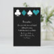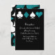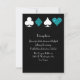 Perfect for a Las Vegas wedding, this reception card features card suits in white and teal glitter on a black background making it the perfect addition to your Las Vegas or casino themed celebration.