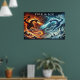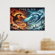 The destiny of fire and ice is intertwined in this epic fantasy scene, featuring two mythical dragons. The fire dragon, scales glowing like molten lava, soars through a fiery sky, flames swirling around it. The ice dragon, shimmering in shades of blue and white, emerges from a frozen landscape, exhaling a chilling mist. The background is a striking contrast between the fiery and icy elements. "FIRE & ICE" is displayed at the Top