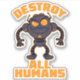 Vector cartoon illustration of an angry robot getting ready for battle with Destroy All Humans text. Keywords: robot, droid, android, warrior, battle, gladiator, fight, mean, angry, mad, orange, black, machine, future, artificial intelligence, cartoon, vector, nasty, cyborg, destroy, humans