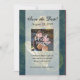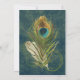 Enregistrez la date avec photo ! Célébrez votre mariage avec une thématique paon artistique et unique avec ce magnifique carton d'invitation de mariage et sa série d'accessoires assortis. Comporte une illustration élégante, riche et luxueuse avec détail de plume de paon dans les tons de bleu de cobalt, de vert sarcelle et de vert clair céladon. Fond en bleu aqua foncé avec un effet lavé antique et motif tourbillonnant. © 2010 www.CustomInvitesOnline.com