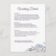 Détails de mariage Menu Combo Fleurs Bleu Poussiér