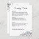 Fleurs romantiques bleu poussiéreux design botanique moderne idéal pour les mariages de printemps ou d'été. Détails de mariage combo au recto et menu au verso.