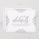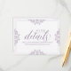 Ces détails de mariage élégants insèrent les coordonnées de la carte parfaitement avec notre suite d'invitation Nadine. La couleur design est définie en lavande (violet clair), mais vous pouvez changer la couleur du design en changeant votre couleur arrière - plan. **COMMENT CHANGER VOTRE COULEUR DE CONCEPTION** 1) Cliquez sur le bouton "Personnaliser". 2) Cliquez sur le lien "ClICK POUR CUSTOMISER PLUS LOIN" en bas. Vous aurez alors la possibilité de changer votre "COULEUR ARRIÈRE - PLAN" en votre couleur mariage. N'oubliez pas de modifier votre couleur de texte pour qu'elle corresponde à votre conception.