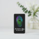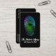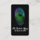A fingerprint under a blacklight on a black background. This is a business card for private investigators, detective agencies or security professionals