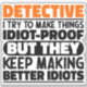 Funny Detective Sayings "Detective I Try To Make Things Idiot Proof But They Keep Making Better Idiots". Grab this Funny Detective design as a funny gifts for an awesome mom, dad or friend.