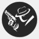 Mobster? Detective? Spy? We're not really sure either, but it's pretty cool looking, right? This noir-style design is sleek, simple, and all kinds of smooth. Be sure to check out the black version for light backgrounds in our gallery. You can also customize your background colours on this design.