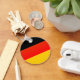 Round keychain features the German Flag or Deutsche Flagge fills all printable space. The flag is three horizontal stripes: one black, one red, one yellow or gold. Fun to use at family reunions, friend reunions, club events, and travel group events. Very handy for Oktoberfest. Lovely all occasion gift. Cool stocking stuffer gift.
