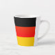 Latte mug features the German Flag or Deutsche Flagge filling all printable space. The flag is three horizontal stripes: one black, one red, one yellow or gold. Cool housewarming gift.