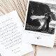 Partagez la joie incontrôlable de votre mariage avec ce carte de remerciements photo chic et moderne. Le design met en évidence votre photo candide préférée, capturant parfaitement un moment de pur bonheur de votre célébration. Sous l'image, l'expression "DEUX COEURS - UN HORIZON" est élégamment indiquée, suivie d'un monogramme personnalisé élégant avec vos initiales, ajoutant une touche personnelle sophistiquée. L'envers poursuit le thème moderne et chaleureux avec un beau message de remerciement écrit dans une délicate police manuscrite. Contrasté avec les titres classiques serif, la note personnelle express votre gratitude à la famille et aux amis pour leur amour et leur soutien. Tout le texte, y compris le message et vos noms, est entièrement personnalisable. Cette carte est le moyen idéal pour partager un aperçu de votre journée joyeuse et envoyer un chaleureux et personnel remerciement à vos proches.