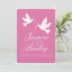 Double face simple colombe blanche avec deux rubans roses faire-part de mariage. Conçu pour un mariage officiel hébergé par le couple à épouser. Personnaliser avec vos propres détails contient les détails RSVP.