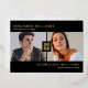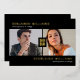 Invitations à la fête de remise de diplômes doubles avec un arrière - plan noir élégant qui peut être changé à n'importe quelle couleur, photos des deux diplômés, et un élégant modèle de célébration conjoint en feuille d'or réel qui est facile à personnaliser. REMARQUE : Le pétrole peut être changé en or argenté ou rose. Vous pouvez ajuster le libellé à l'arrière du grand invitation pour en faire un faire-part de graduation.