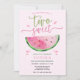 Fêtez votre enfant de deux ans avec un anniversaire à thème pastèque! Idéal pour une fête d'anniversaire pour votre bébé d'été. Cette amusante invitation d'anniversaire à thème melon comprend une pastèque aquarelle et le script "Two Sweet". Personnalisez avec vos informations ou cliquez sur "Cliquez pour customiser plus loin" pour modifier les styles, la taille et les couleurs des polices.