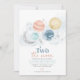 Two The Moon - A cute Space thème 2ème anniversaire invitation pour votre petite fête d'anniversaire garçons. Notre design comprend des planètes aquarelles, une fausse lune d'argent, des étoiles, une fusée, ce qui en fait le plus beau thème de 2ème anniversaire.