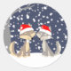 Une amitié chaleureuse incarnée par deux loups (avec des casquettes de Noël rouge vif !) dans la neige. Salutations de Noël et de Nouvel An.