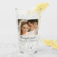 Beau verre personnalisé personnalisé de 16 onces avec vos deux photos avec des noms, date et message modifiables sur le dos dans magnifique script mixte et typographie serif! Vous pouvez facilement le tester en téléchargeant vos photos et en modifiant les noms, la date et le message. Ces lunettes de shaker sont fabriquées avec des articles de bar Libbey de haute qualité.