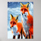 Deux renards rouges dans la neige | AI Art Poster