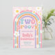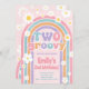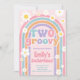 Le design est pour un deuxième anniversaire ! Dispose d'un arc-en-ciel rétro, d'une typographie amusante et de fleurs. Une invitation sucrée et colorée pour la fête du 2ème anniversaire de votre petit ! Personnalisez le texte modifiable.