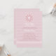 A tone on tone pink background pattern is overlaid with a circular daisy-like motif. In the centre is a cross which can be eliminated and replaced with a monogram. Suitable for Baptisms and Christenings too. The card is easy to customize with your wording, font, font colour and choice of six paper types.