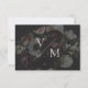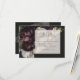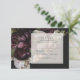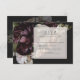 A lush and luxurious floral wedding RSVP card featuring purple, pink, and white florals in a dark scheme. Peonies, ranunculus, and snapdragons are the central flowers displayed.