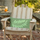 Joli coussin extérieur vert sur vert doux résistant, avec des graphiques d'une grande fronde de fougère. Le texte vert personnalisé, sur le devant, lit la foune et peut être personnalisé pour lire ce que vous voulez. Grand ajout à votre espace de vie arrière cour.