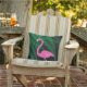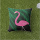 Ces amusement et coussin extérieur tropical est décoré d'un flamant rose lumineux et des palmettes sur un arrière - plan noir d'un côté, alors que l'autre côté est juste décoré du flamant, faisant lui l'accessoire parfait d'été pour la maison de plage, à patio, à plate-forme ou à espace piscine.