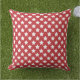 Coussin extérieur en rouge lumineux avec un bon nombre d'étoiles blanches.