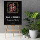 This engagement party welcome sign presents an intriguing and visually striking design, featuring a black background that serves as a dramatic canvas for the main illustration. The invitation itself is made of high-quality, textured paper with a velvety finish, adding a touch of luxury to the overall appearance.