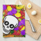 * Two cute calavera sugar skulls, looking at each other...placed on a colourful background of fruit. This fun Dia De Los Muertos towel measures 16" x 24". A Fun addition for your 'Day of the Dead' decoration. * 80% durable woven polyester/ 20% polyamide blend microfiber * Use to dry dishes or hands, Wring Out Watery Vegetables, as a handy pot holder, holiday table decor, Prevent Scorch Marks on Your Table, use to hold warm bread, tortillas in a basket.....or can you think of more uses? * {Currently, this design can be transferred to 100's of products} *