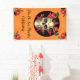 Dia del los muertos party banner with skull and flowers. Wow your partygoers with this beautiful party logo banner for you big bash. Han git at the entrance to the party, then after the party keep it as memorabilia and use it again next year. This banner is versatile in that you may also personalize it for Halloween.