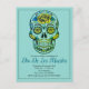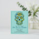 Dia De Los Muertos Sugar Skull And Flowers On Blue Invitation Postcard