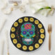 Dia de los Muertos Teal Sugar Skull & Daisies 9" Paper Plate