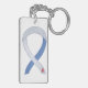 The key chain features the art of grey and blue awareness ribbon with a blood drop on it. Insulin Dependent Diabetes Mellitus (IDDM), also known as type 1 or juvenile diabetes, uses this ribbon to promote awareness for its cause. The grey and blue awareness ribbon art key chain can be customized with personalized messages to make great cause key chains for fundraisers, awareness gifts, or other special events or occasions.