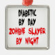 This funny text design features the phrase "Diabetic by Day Zombie Slayer by Night" and is perfect for anyone diagnosed with diabetes that loves zombies.