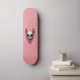 Death head with pink horns pulling the tongue. Vector illustration on pink background