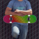 Diag Rainbow Gradient Floral Pattern Red Green Skateboard