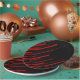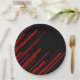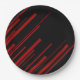 An asymmetrical design with red diagonal lines on a black background creates a stylish, retro vibe.