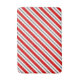 Bath mat in a diagonal striped pattern with a summer, feel, in deep lipstick red and white, accented with grey / grey