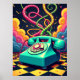 Step back in time and dial into a surreal dimension with this vibrant artwork, where nostalgia takes a fantastical turn. This piece tells the story of an iconic vintage rotary phone, reimagined not as a relic, but as the centerpiece of a high-energy, pop art dreamscape. Its glossy pastel teal body grounds the image, while its cord explodes into a chaotic, glowing tangle of neon "spaghetti" in electric pink and lime green, reaching toward a sky filled with cartoonish, swirling clouds. The piece is special because it masterfully blends the graphic energy and bold colours of classic pop art with the dreamlike, illogical imagination of surrealism. It's more than a poster; it's a conversation starter and a unique statement piece for anyone who appreciates the beautiful collision of the past, the present, and a truly mind-bending aesthetic.