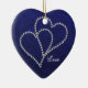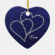 Deux coeurs faits en fausse pierre bling de style - diamants se reliant et collant au-dessus de l'un l'autre sur un arrière - plan profond de bleu royal avec un motif subtil de damassé dans lui. Grand pour des mariages, anniversaire, fiançailles, célébration de l'amour, romance, couples. Pendez de votre année d'arbre de Noël après année en l'honneur de l'année donnée ou célébrée. Customisez le texte pour m'adapter ou envoyer ici si vous avez besoin de l'assister customiser ou de l'image placée sur d'autres produits de Zazzle dans mon magasin. Si je peux… je vais le faire ! ~ :)