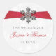 Diamante Snowflake & Red Ribbon Winter Wedding Classic Round Sticker