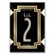 Un design vintage et magnifique Mariage Réception Table Numéro carte inspirée par l'élégant mouvement Art Déco de l'art du début du XXe siècle et en particulier le Grand Gatsby. Des motifs géométriques pimpants et propres en noir, blanc et faux or forment un design très décoratif. Les accents Faux diamant et la table numéro deux complètent le design.