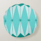 Ce Coussin rond géométrique Diamonds & Starbursts (en gros caractères) a tout le charme kitsch de quelque chose qui est kitsch et charmant. Le design d'inspiration vintage présente un arrière - plan mod bleu paon aux hexagones bleu clair allongés, superposés de diamants turquoise et d'étoiles bleu paon. C’est un kaléidoscope de bonté rétro ! Le design de style Palm Spring des années 1950 et 1960 ressemble à celui d'un hôtel de style moderne du milieu du siècle ou de la maison de votre famille de télévision classique préférée.