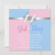 Elegant pink and blue with white bow with diamond centre wrapped gift pink and blue gender reveal party invitations. This adorable pink and blue elegant gender reveal design is the perfect way to gather family and friends and tell them the news! Add your details to the back by simply choosing the "Customize it!" button to begin adding your event details, font style, font size & colour, and wording. Please note - all of the invitation designs you will find on Zazzle are printed graphics on flat paper stock with no actual jewels, bows, raised, embossed, or added parts or pieces.