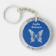 Diamond Butterfly Silver Metal Name/Info Deep Blue Keychain